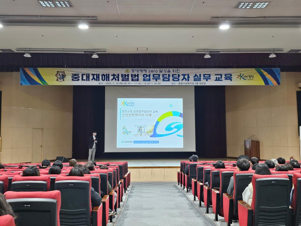 합천군은 지난 3월 18일 종합사회복지관 3층 대강당에서 현업근로자 관리 담당자를 대상으로 ‘중대재해처벌법 관련 담당자 실무 교육’을 실시했다.