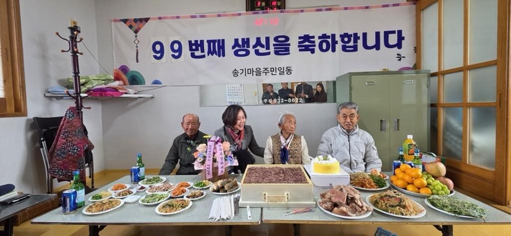 안호문 송기마을 이장은 “아름다운 효심을 담아 어르신의 백수연 기념잔치에 손길을 보태준 마을주민분들께 감사드린다”며 “어르신이 건강하게 오래오래 행복하시길 바란다”고 전했다.