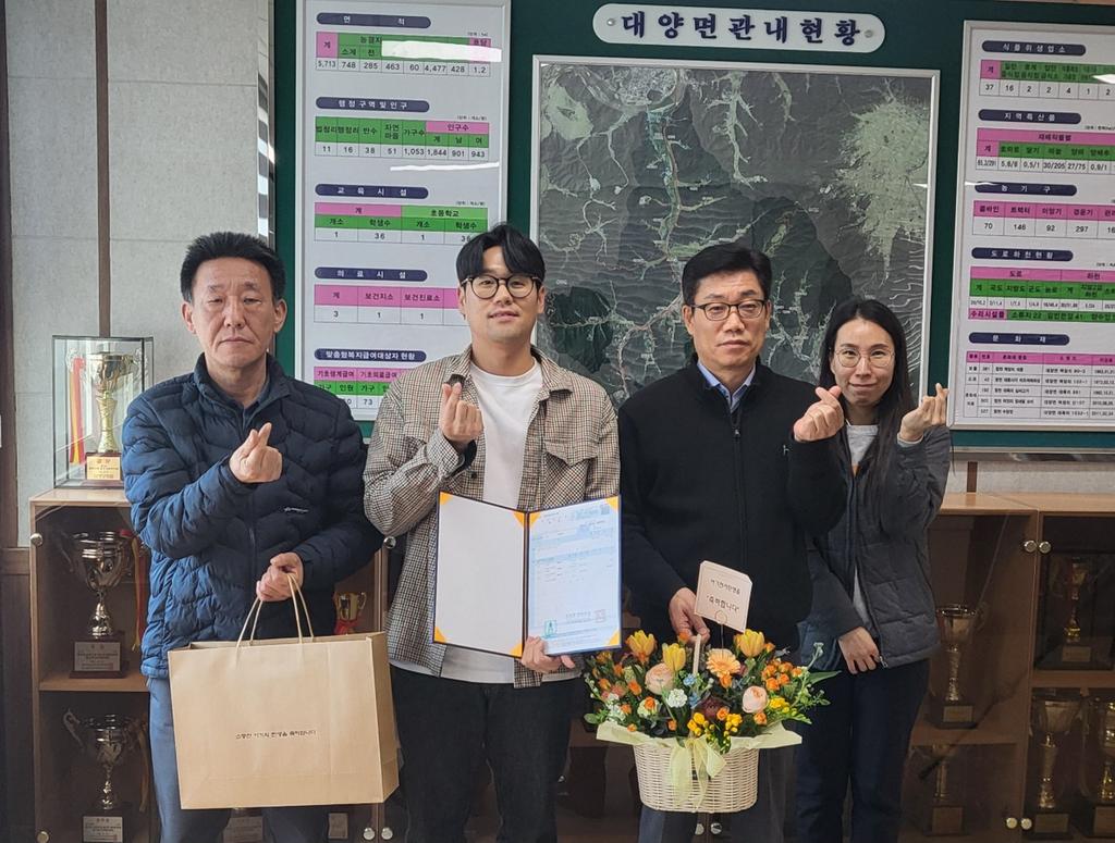 이날 대양면은 미리 준비한 꽃다발과 배냇저고리를 정씨 부부에게 선물하고, 생애 첫 등본을 액자에 담아 전달하며 소중한 새 생명의 탄생을 축하했다.
