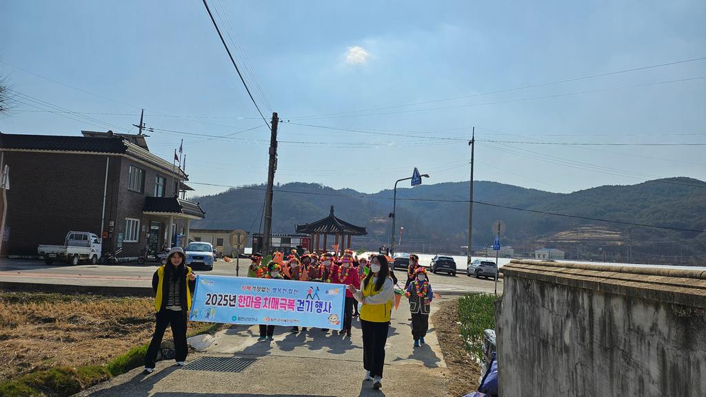 합천군치매안심센터(센터장 안명기)는 14일부터 20일까지 용주면(장전), 대양면(덕정·백암), 청덕면(소례·중적포) 치매안심마을 5개소 주민들과 함께하는 ‘2025년 한마음 치매 극복 걷기“ 행사를 진행했다.