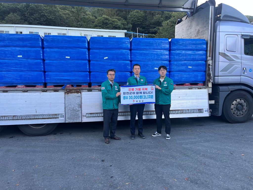합천군은 극심한 가뭄으로 생활용수 공급에 어려움을 겪고 있는 강원특별자치도 강릉시에 생수 2리터 3만 병을 긴급 지원한다고 16일 밝혔다.