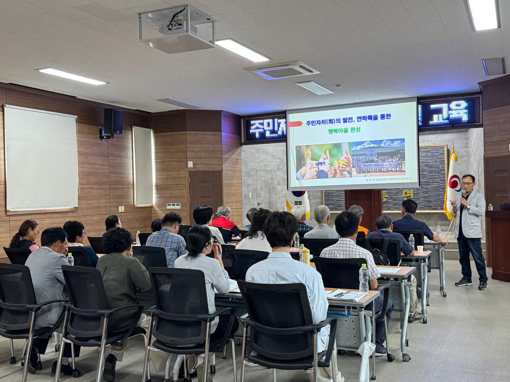 정기회의와 더불어 진행된 아카데미 교육은 주민자치회 활동의 이해와 역할, 주민참여 활성화에 관한 내용으로 구성되었다. 회원들은 교육을 통해 주민자치회의 가치와 방향성을 배우고, 앞으로 지역 사회 발전을 위한 주체적 참여 의지를 다졌다.