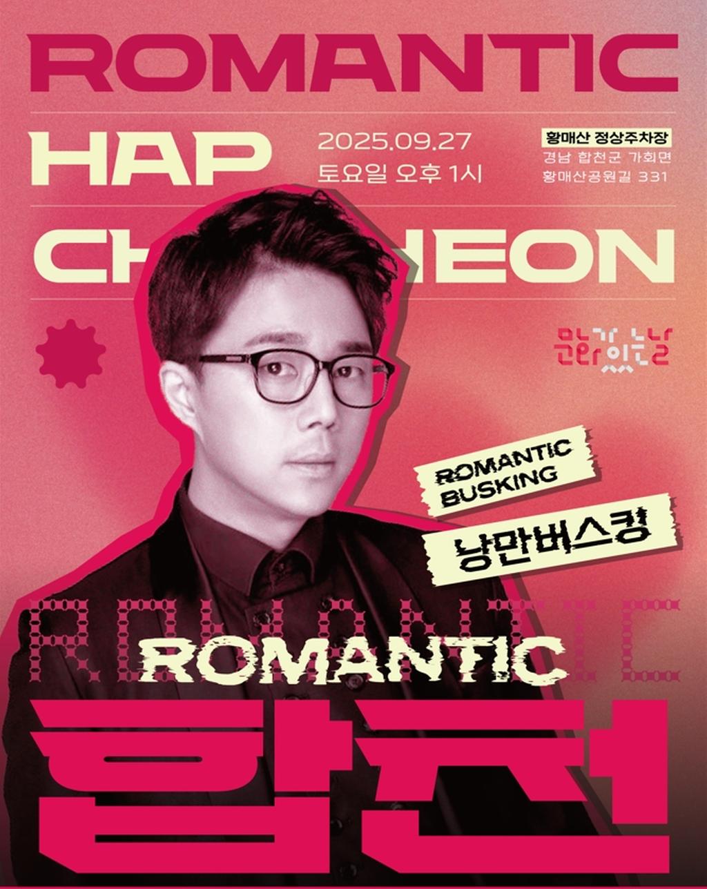 합천군은 9월 27일(토) 오후 1시 황매산 정상주차장 일원에서 ‘로맨틱 합천-낭만버스킹’ 공연을 개최한다고 밝혔다.