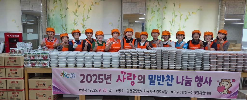합천군여성단체협의회(회장 이정임)는 25일 합천군종합사회복지관 지하1층 경로식당에서 어려운 이웃을 위한 ‘사랑의 밑반찬 나눔 행사’를 가졌다.