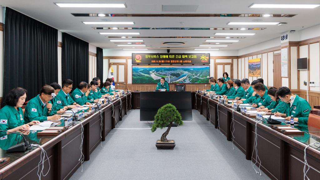 합천군(군수 김윤철)은 대전 국가정보자원관리원 화재로 일부 전산 시스템이 중단됨에 따라 ‘부서별 장애업무 긴급 대책 보고회’를 개최하고, ‘재난안전대책본부’를 가동했다고 밝혔다.