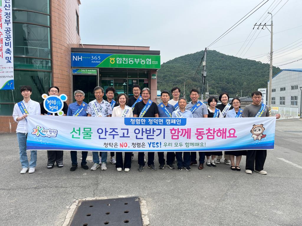 합천군 청덕면(면장 이은숙)은 지난 2일 이장 및 기관사회단체장과 면사무소 직원 30여명이 참석한 가운데 추석 명절 맞이 청렴캠페인을 펼쳤다.