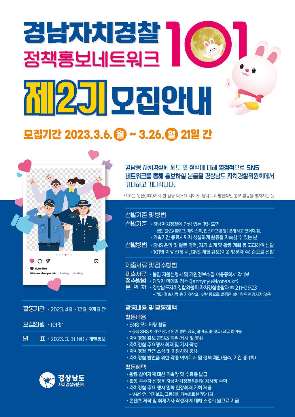 경남자치경찰 소통메신저, 제2기 정책홍보네트워크101 활동회원 모집