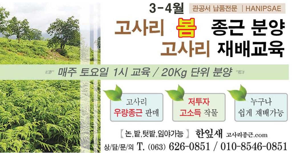 고사리재배는준비한 만큼, 교육받은 만큼 성공합니다.