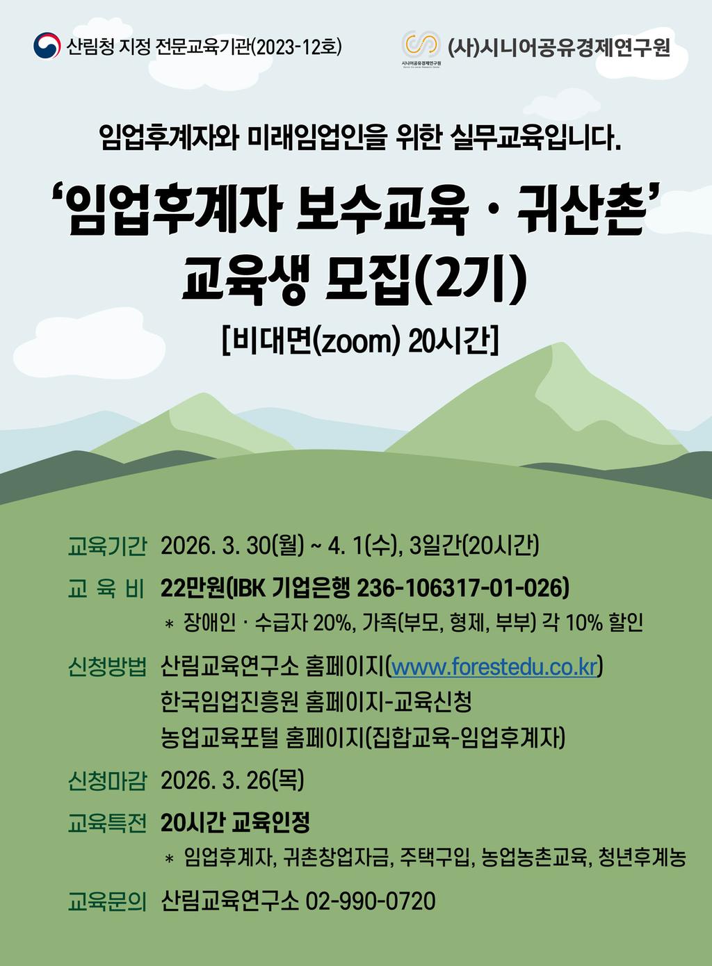 2026년 임업후계자 및 귀산촌 교육 안내(3기)