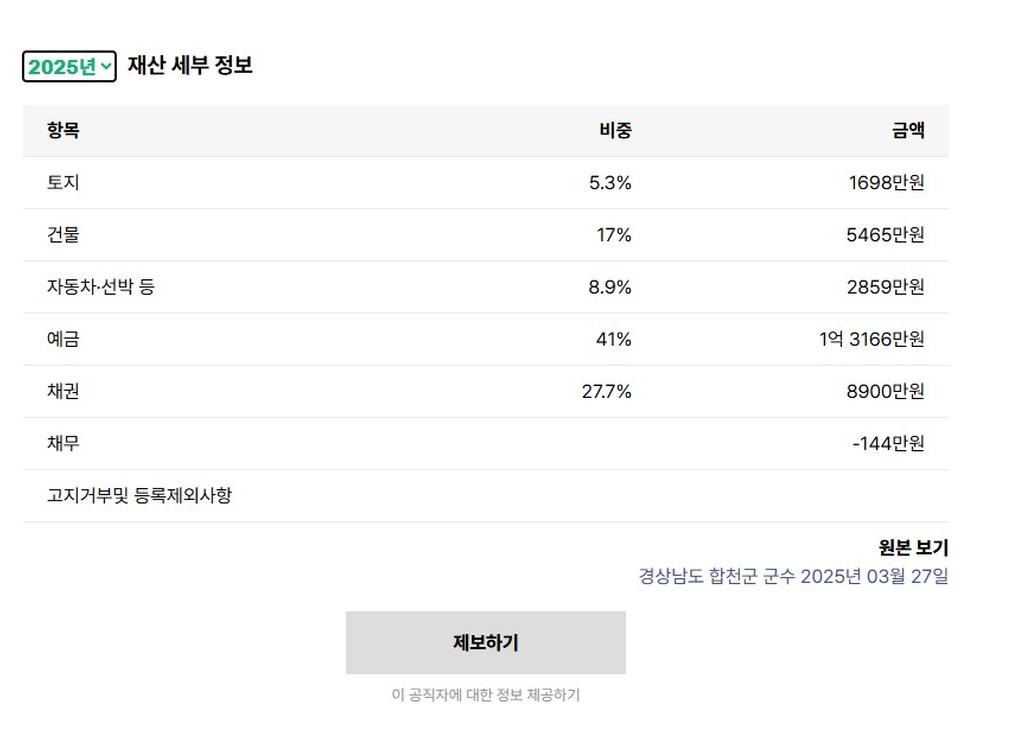 재산 등록은 공직자 재산 공개에서 발취 를 하였으니 확인이 되는 부분이며