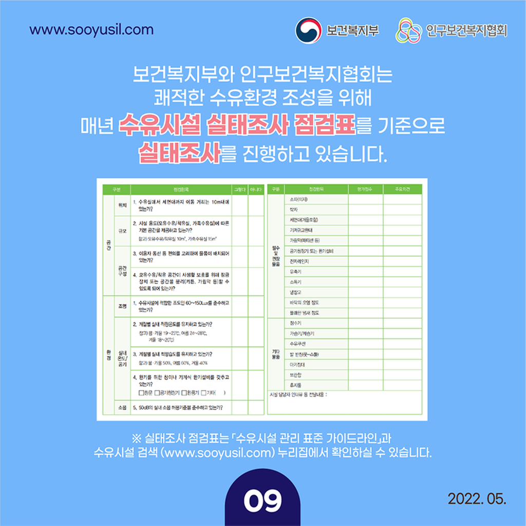 2022년 수유시설 표준 관리 가이드라인 카드뉴스 안내