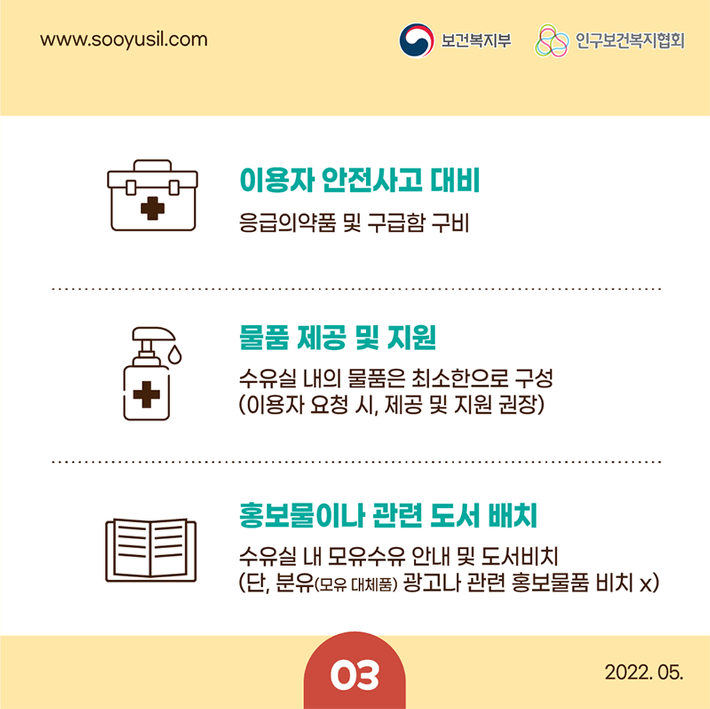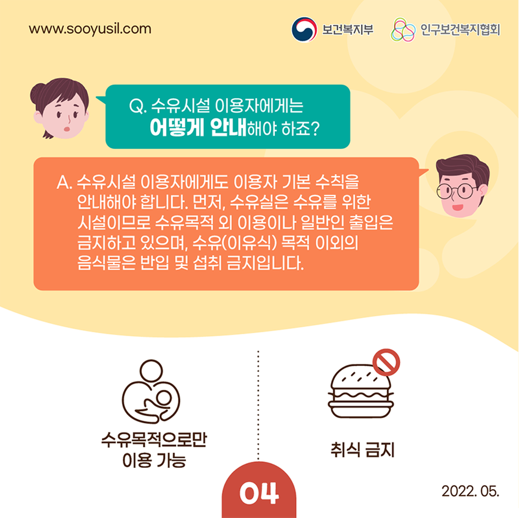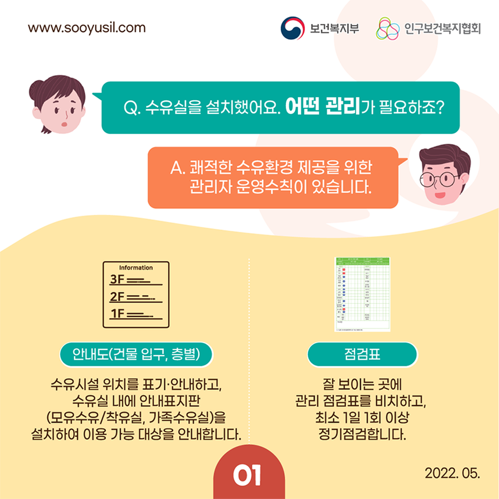 2022년 수유시설 표준 관리 가이드라인 카드뉴스 안내