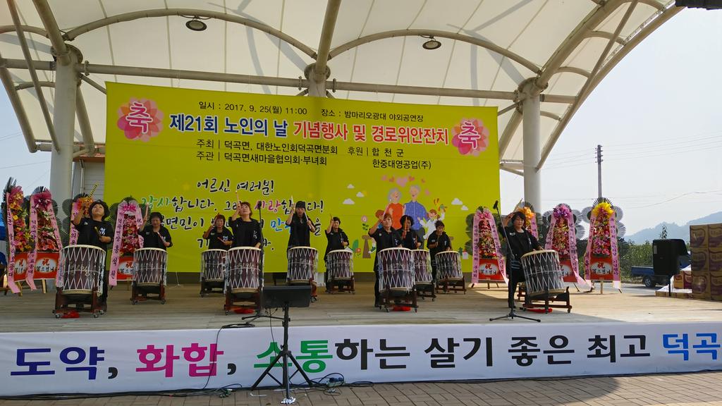 합천군 덕곡면 새마을협의회·부녀회(회장 서재희·김순덕)에서 주관, 덕곡면(면장 홍석천)과 노인회 덕곡면분회(분회장 전영권)가 주최, 합천군과 한중대영공업㈜에서 후원한 제21회 노인의 날 기념행사 및 경로위안잔치가 25일 11시에 덕곡면 밤마리오광대 야외공연장에서 400여명의 노인들이 참석하여 성대하게 열렸다.