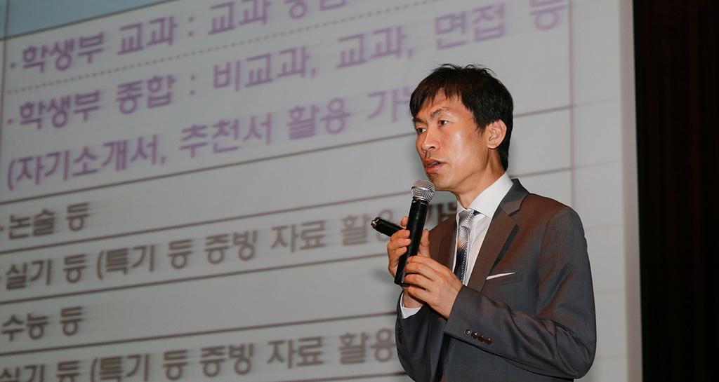 이만기 이사의 강의에 앞서 유웨이 중앙교육평가연구소 대입컨설턴트 이재백 강사의 2015년 대입 합불사례 분석이란 제목으로 강의를 하였으며 학생, 학부모의 궁금증을 풀어주는 시간을 가졌다.