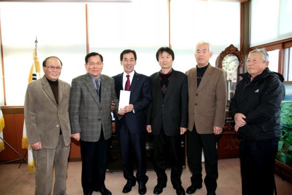 <p style="font-size: 13pt; margin: 0pt 5pt 0pt 13.3pt; color: #000000; text-indent: 0pt; line-height: 160%; font-family: "휴먼명조"; letter-spacing: -0.65pt; text-align: justify"><span style="font-size: 12.35pt; color: #000000; line-height: 20.8pt; font-family: 휴먼명조,한컴돋움; letter-spacing: -0.65pt; text-align: justify"> 29일 오전 9시 합천군그라운드골프연합회(회장 최일성) 회원들이 (사)합천군교육발전위원회(이사장 하창환)를 찾아 향토인재육성을 위해 써달라며 교육발전기금 200만원을 기탁하였다. </span></p>