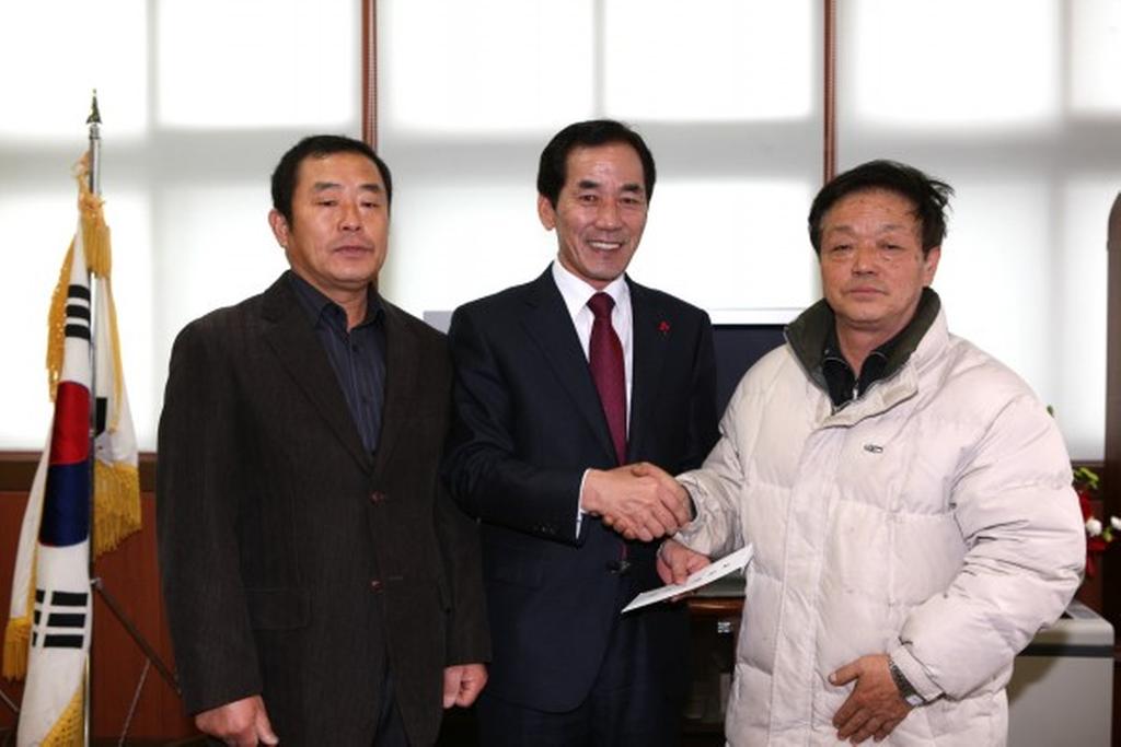 <p style="font-size: 14pt; margin: 0pt 8.53pt 0pt 9.07pt; color: #000000; text-indent: 0pt; line-height: 180%; font-family: "휴먼명조"; text-align: justify"><span style="font-size: 14pt; color: #000000; line-height: 25.2pt; font-family: 휴먼명조,한컴돋움; letter-spacing: 0pt; text-align: justify"> 2011. 1. 5일 가야면 야천리 정골노인회(회장 이종윤)에서 사단법인 합천군교육발전위원회 이사장인 하창환 군수를 방문하여 지역의 인재육성을 위해 써 달라며 교육발전기금 1백만원을 기탁했다.</span></p>