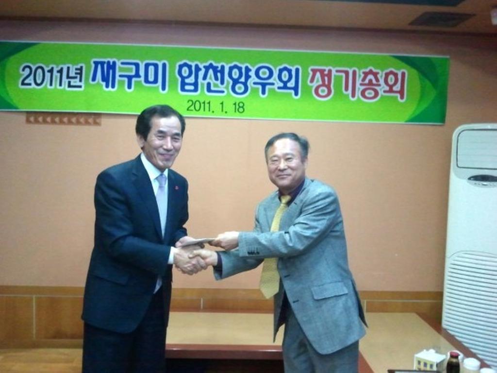 <p style="font-size: 13pt; margin: 0pt 3pt 0pt 19pt; color: #000000; text-indent: -16pt; line-height: 160%; font-family: "휴먼명조"; text-align: justify"><span style="font-size: 13pt; color: #000000; line-height: 20.8pt; font-family: 휴먼명조,한컴돋움; letter-spacing: 0pt; text-align: justify"> 17일 저녁에는 경북 구미에서 열린 재구미 합천향우회 정기총회에서 회장 권봉현 씨를 비롯한 회원 8명이 고향의 인재육성을 위해 써달라며 교육발전기금 300만원을 기탁했다.</span></p>