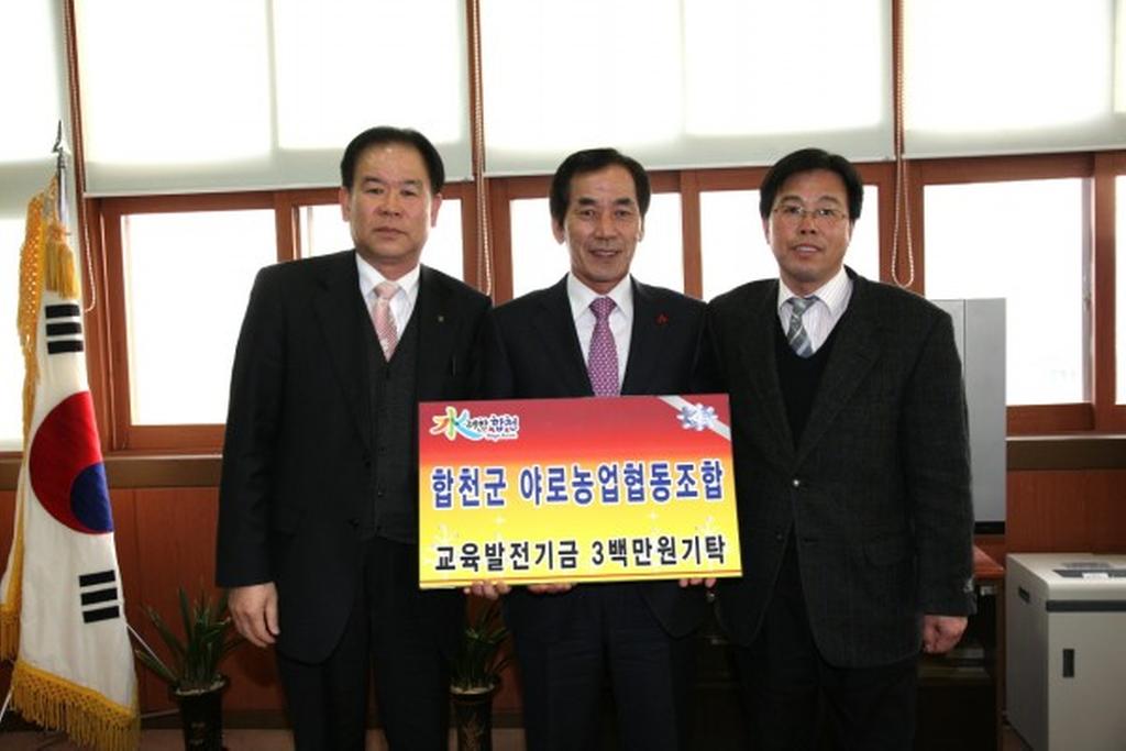 <p style="font-size: 13pt; margin: 0pt 13.53pt 0pt 14.07pt; color: #000000; text-indent: 0pt; line-height: 150%; font-family: "휴먼명조"; text-align: justify"><span style="font-size: 13pt; color: #000000; line-height: 19.5pt; font-family: 휴먼명조,한컴돋움; letter-spacing: 0pt; text-align: justify"> 21일 오전 9시 합천군게이트볼연합회 와 합천군야로농협 에서 향토인재육성과 교육여건개선을 위해 써달라며 교육발전기금 200만원과</span></p>