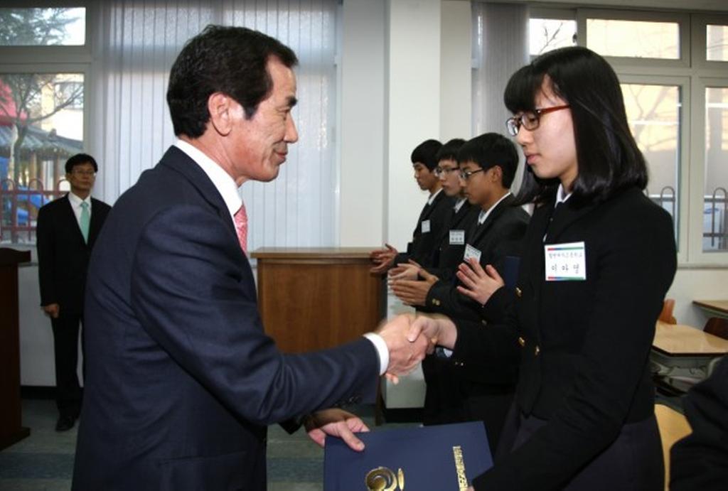 또한 관내 중학교 졸업생 중 내신성적 10%이내로 관내 고등학교에 진학한 23명에게는 고등학교 3년동안 등록금 일체를 지원하는 장학증서를 수여했다.