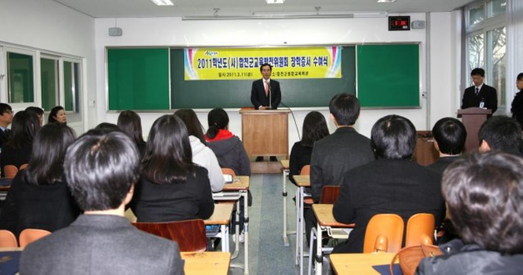 (사)합천군교육발전위원회 는 11일 오후 6시 합천군종합교육회관에서 2011년도 합천지역 우수학생 26명에게 장학금을 전달했다.