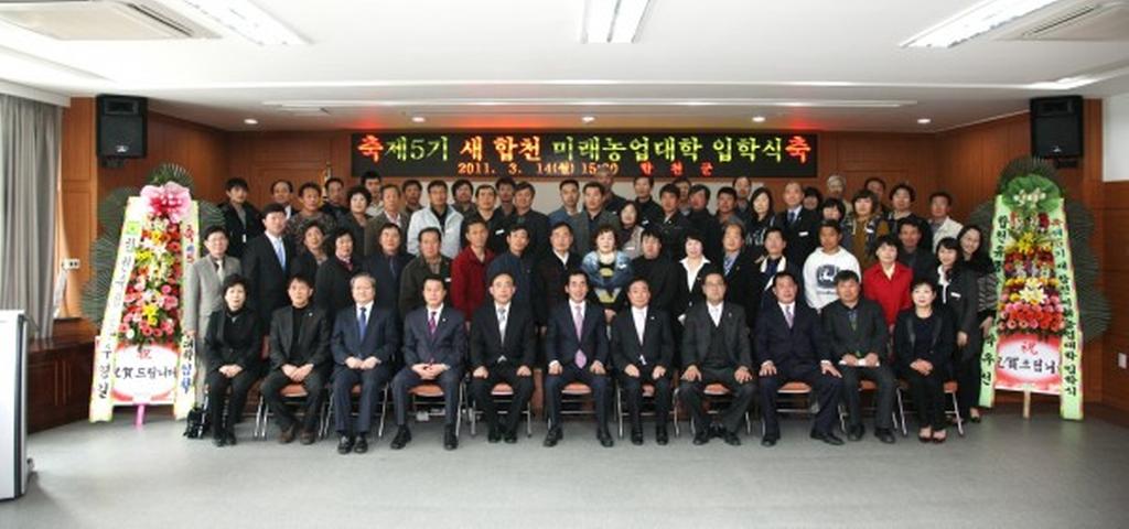 합천군은 14일 오후 3시 합천군농업기술센터 3층 대강당에서 하창환 군수, 박우근 군의회의장, 도· 군의회 의원, 유관기관 사회단체장, 신입생 등 120여명이 참석한 가운데 제5기 새합천 미래농업대학 입학식을 가졌다.