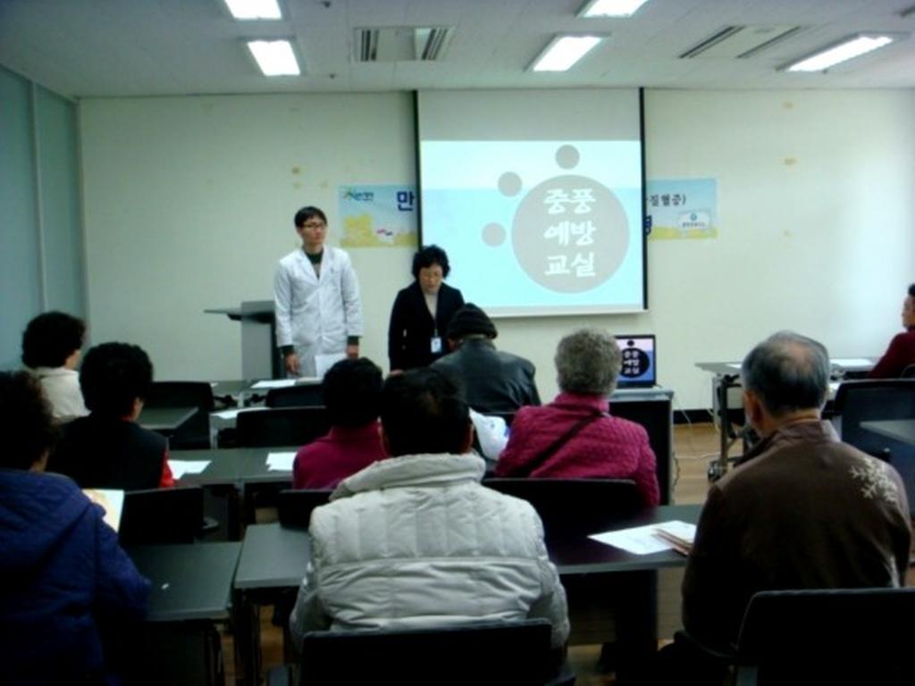 4주간 운영 프로그램은 뇌졸중(중풍)예방, 스트레스관리(스트레칭 및 가요), 저염식이 교육 및 실습, 심신요법“명상”으로 운영되며, 참여자들은 기초 검사, 체성분검사 등을 무료로 받을 수 있으며, 또한 만성질환 전산등록 동의자는 건강 매니저와의 상담과 관리를 지속적으로 받을 수 있다.