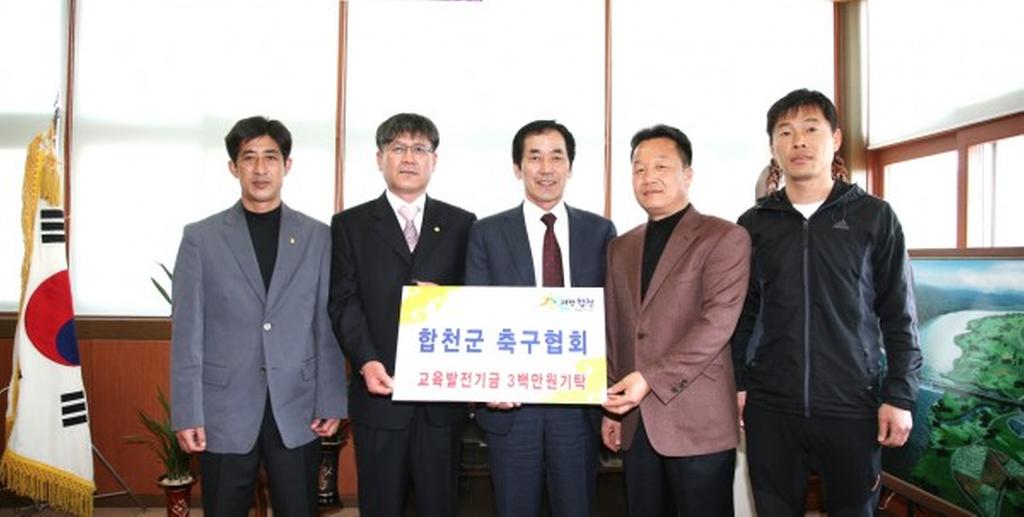 합천군 축구협회(회장 전점현)도 같은날 오후 3시 합천군청을 방문하여 회원들이 십시일반 모아 마련한 기금을 지역교육여건 개선을 위해 써달라며 교육발전기금 300만원을 하창환 군수에게 기탁했다.
