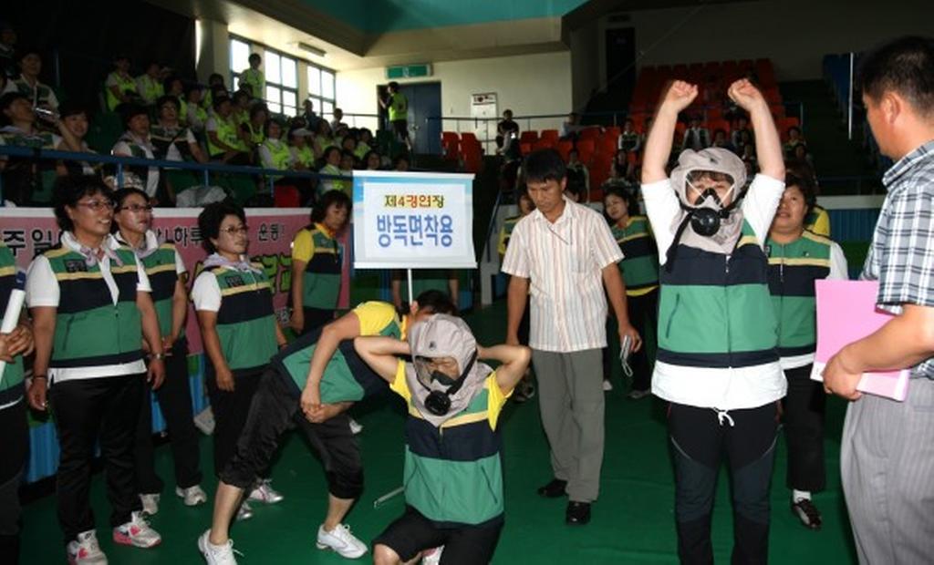 주부민방위대 경연대회는 시군 18개팀(팀당 10명) 180명이 참가해 심폐소생술, 골절처치, 방독면 착용, 구명환던지기 등 실기경연대회를 시·군부로 구분하여 평소 딱아 온 기량을 발휘했다.