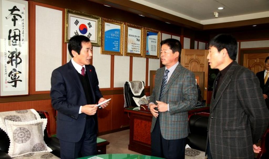 대한건설협회 경남도회 합천군 종합건설협의회에서 11일 오전 어려운 이웃 돕기 성금 3백만원을 하창환 합천군수에게 전달했다.