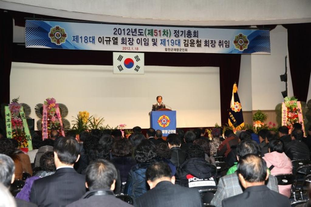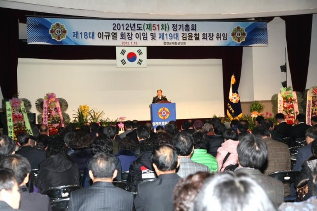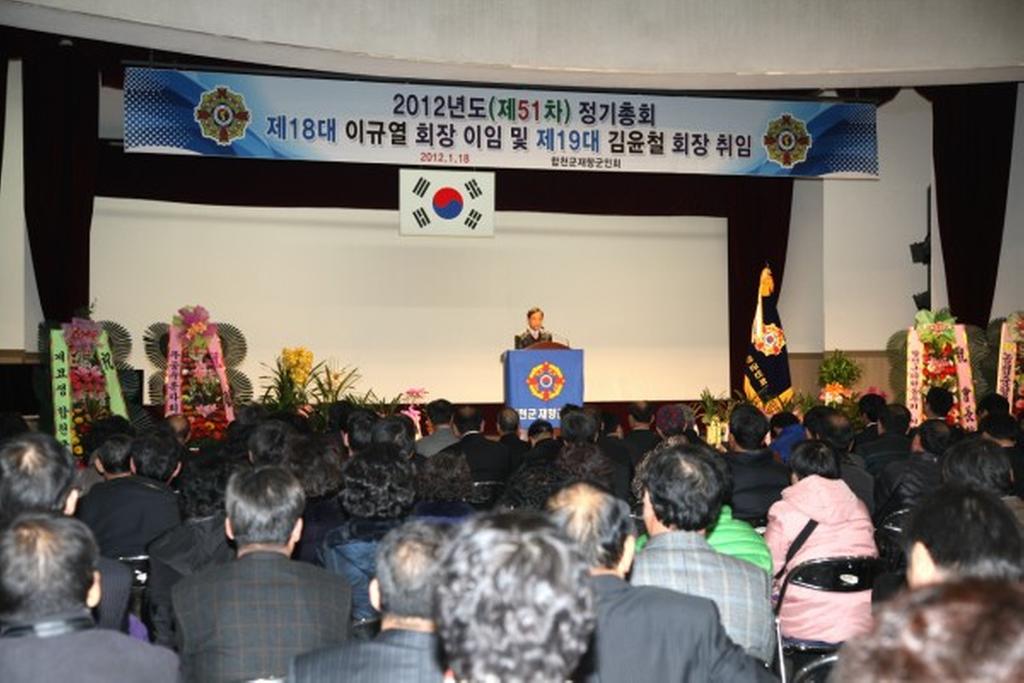 합천군 재향군인회에서는 18일(수) 오전 10시 문화예술회관에서 하창환 합천군수, 조진래 국회의원, 박우근 군의회의장, 김학수 교육장, 문준희 도의원, 경남·울산 재향군인회 박중판 회장, 합천군 재향군인회 이규열 회장을 비롯한 회원 200여명이 참석한 가운데 국가안보 강화 및 회원친목과 단합을 위한 결의문 채택 및 2012년도 제51회 정기총회를 갖고 이어 합천군 재향군인회를 3년간 새롭게 이끌어갈 김윤철 회장에 대한 인준안을 승인하고 임원선출도 함께 이뤄졌다.