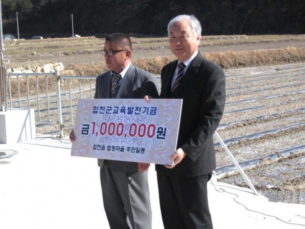 - 준공식 행사에서 합천군교육발전기금 1백만원 기탁 -
