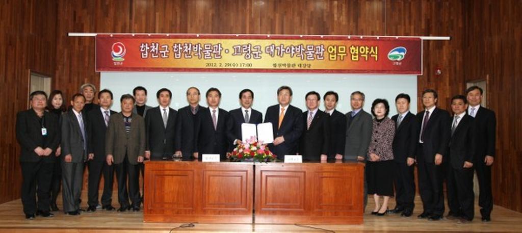 합천군과 고령군은 2012년 2월 29일(수) 오후 5시에 합천박물관 대강당에서 하창환 합천군수, 곽용환 고령군수를 비롯한 관계자 30여명이 참석한 가운데 합천박물관과 대가야박물관의 상호 발전을 위한 업무협약을 체결하였다.