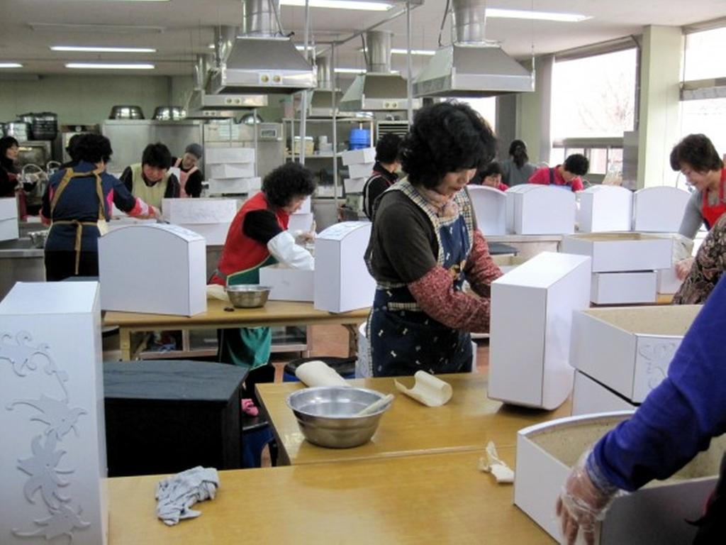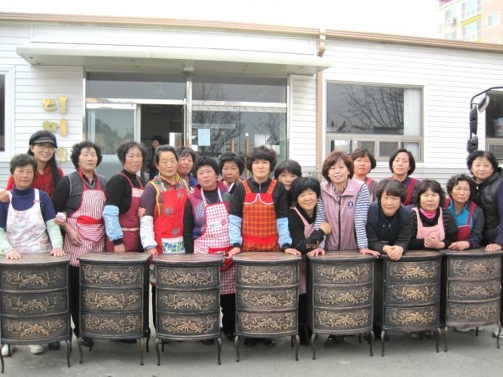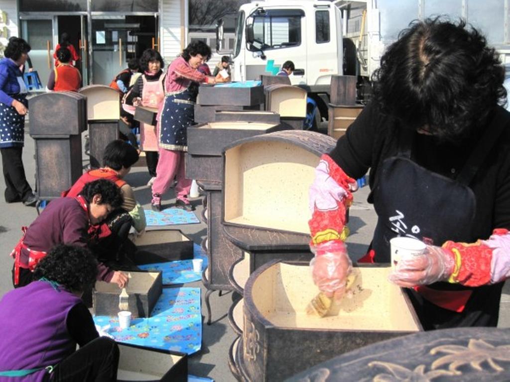 올해는 우리선조들이 애용하여 왔던 한지를 이용한 당초무늬 3단 서랍장을 만들어 전통의 멋을 이어가고 또한 종이와 손을 이용하여 생활에 도움이 되는 한지공예품을 만드는 즐거움으로 교육장에 웃음꽃이 한 가득이다.