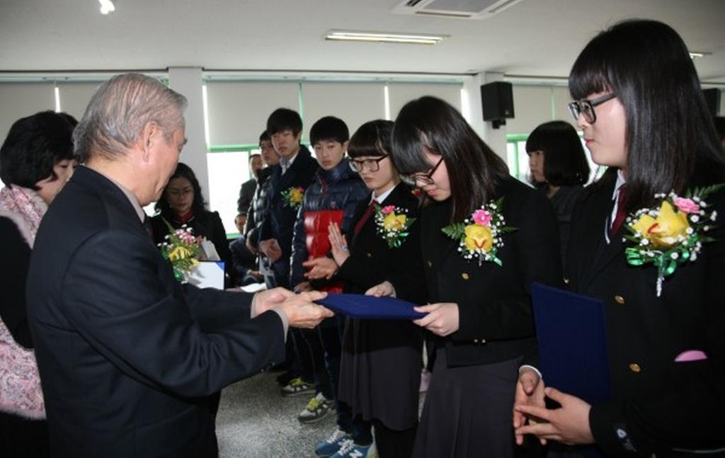 장학회는 가정형편이 어려움에도 불구하고 학업성적이 우수하고 성실한 학생을 추천받아 고등학생 5명에게 각 1백만원, 중학생 16명에게 각 50만원을 지급하는 등 총 21명에게 1천3백만원의 장학금을 수여했다.