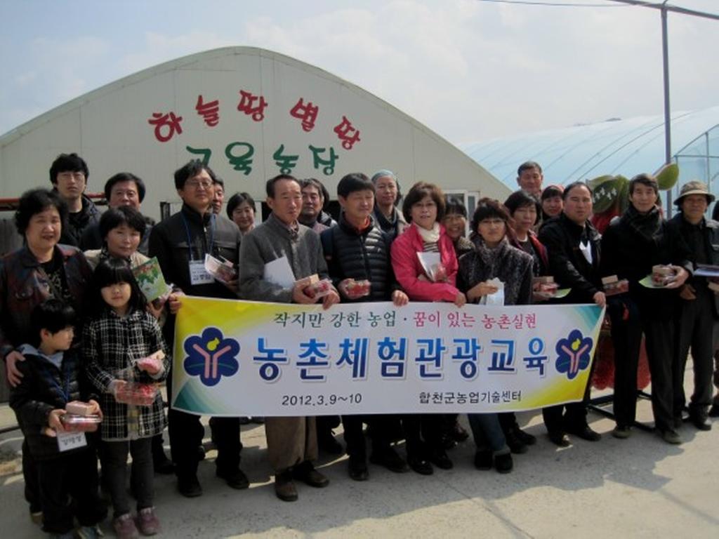합천군 에서는 다양한 농촌체험 컨텐츠 개발로 도시민 만족도 향상 및 차별화된 지역단위 체험상품 개발로 농촌체험농장 및 마을의 경영다각화를 위하여 다가오는 9일부터 10일 이틀간 기술센터 3층회의실에서 우리군의 농촌체험농장 및 체험마을대표(사무장) 30명을 대상으로 농촌체험관광교육을 실시하였다.
