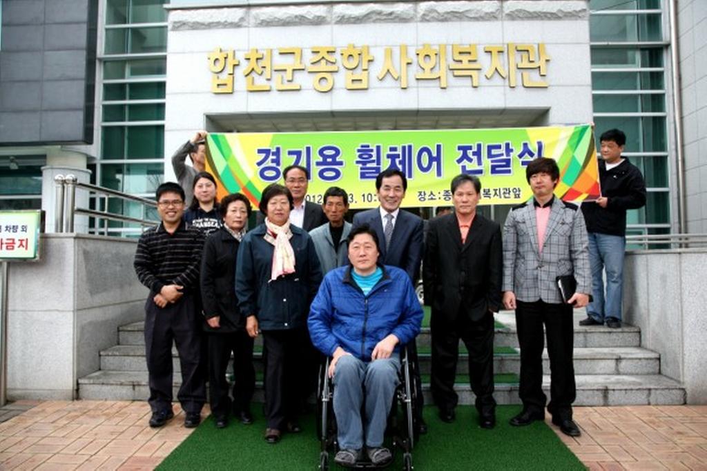 합천군은 장애인 생활체육 활성화를 위해 13일 오전 10시 종합사회복지관에서 장애인 경기용 수동휠체어를 경상남도지체장애인협회 합천군지회에 전달하였다.
