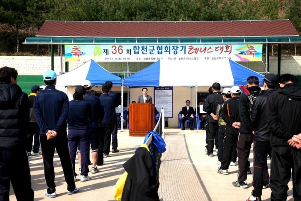 합천군테니스협회(회장 강창규)가 주최하고, 합천군체육회가 후원하는 제36회 합천군협회장기 테니스대회가 4월 15일 11개 클럽 300여명이 참석한 가운데 생활체육테니스장 및 보조구장에서 개최되었다.
