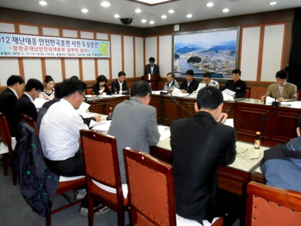 었고, 2차 실무반 회의가 4월 16일에 군청 소회의실에서 실무반별로 주어진 과제를 발표하는 시간을 가져 2012 재난대응 안전한국훈련의 성공적인 추진을 위하여 만전을 기하고 있다.