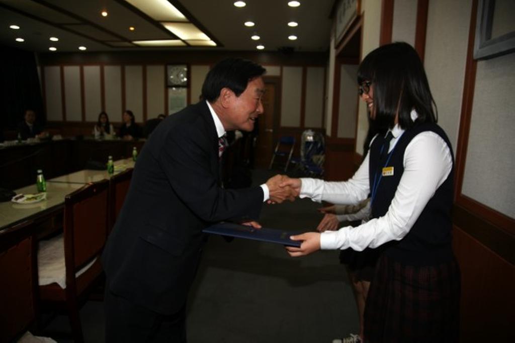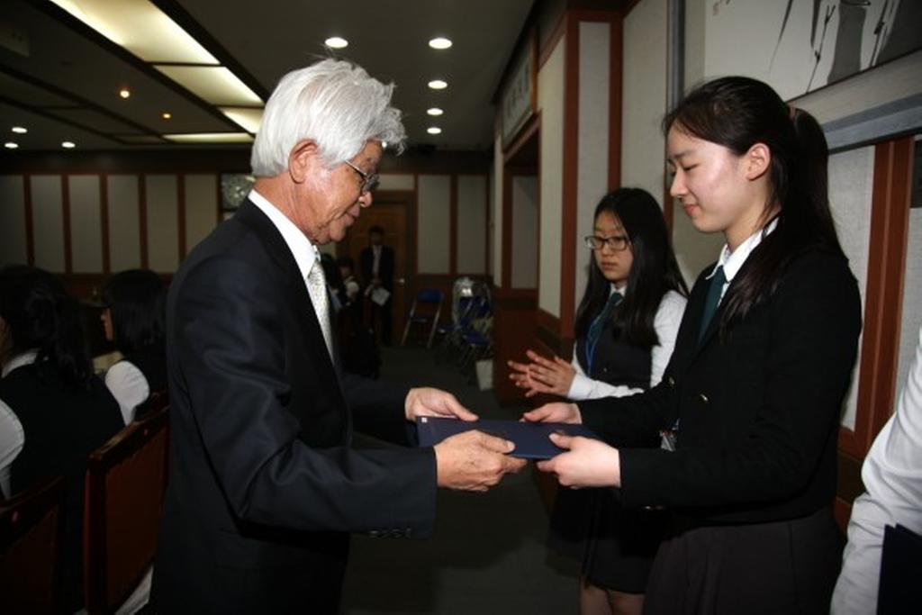 장소관계상 예체능 특기 장학생 및 고등학교 성적우수 학생만 참석한 가운데 총 4천 3백만원의 장학금이 지급되었으며, 이번 장학증서 전달식은 올해 처음 신설된 장학기준이 적용되어 관내 재학생 중 예체능 특기 우수학생과 관내 중학교 출신으로 관내고교 진학 후 성적이 향상된 학생, 기초생활수급자 학생 중 내신 성적 50점 이상인 학생들까지 장학혜택이 확장되었다는 데 의의가 있다.