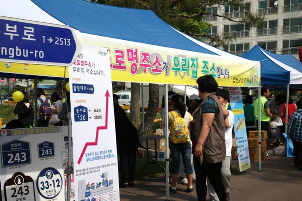 합천군 에서는 5월 5일 일해공원에서 열린 어린이날 행사에 참여한 어린이와 가족을 대상으로 도로명주소 홍보부스를 운영하였다
