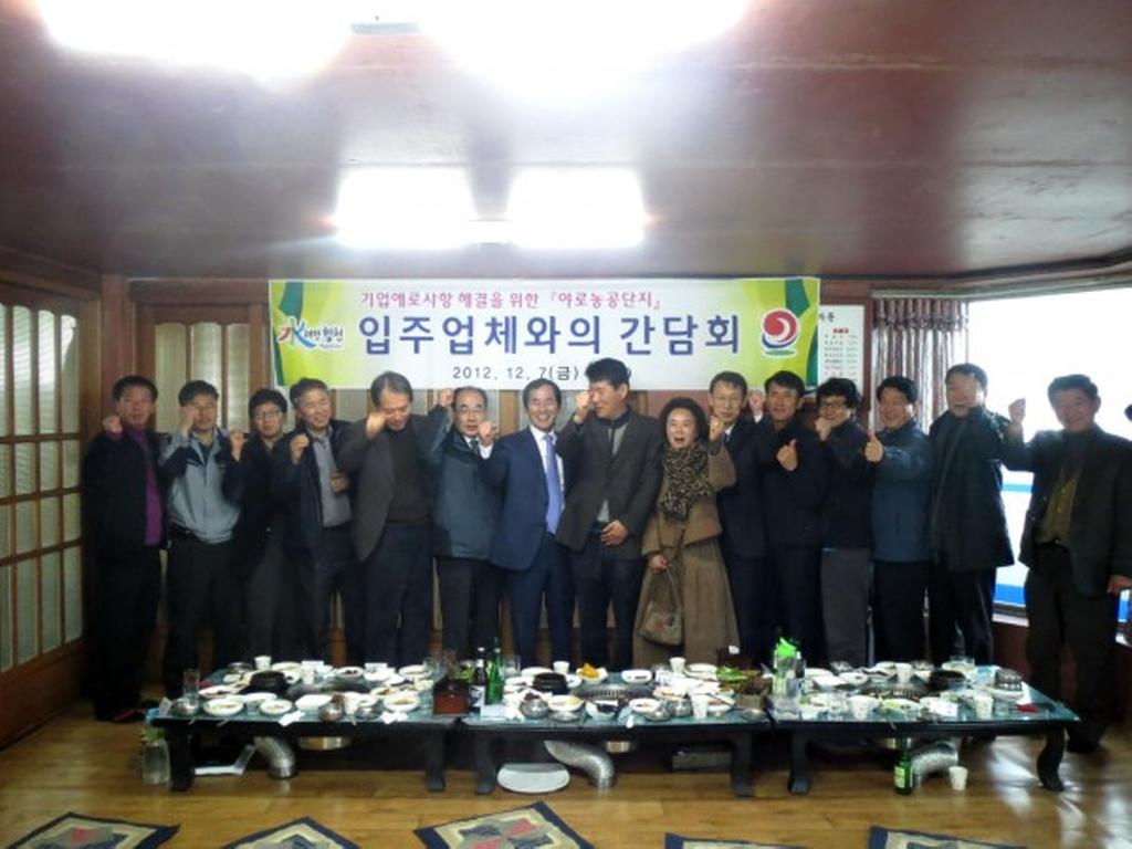 군은 관공서 회의실의 경직된 분위기를 벗어나 자유롭게 의견을 개진할 수 있도록 농공단지 인근 식당에서 개최하였는데, 화기애애한 분위기에서 업체 대표들의 좋은 반응을 이끌어 냈다.