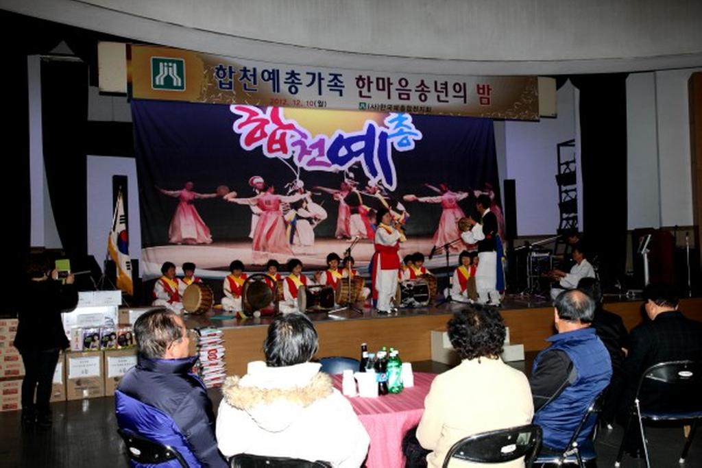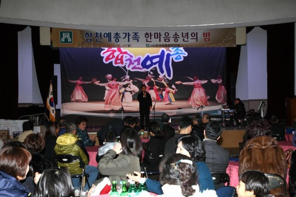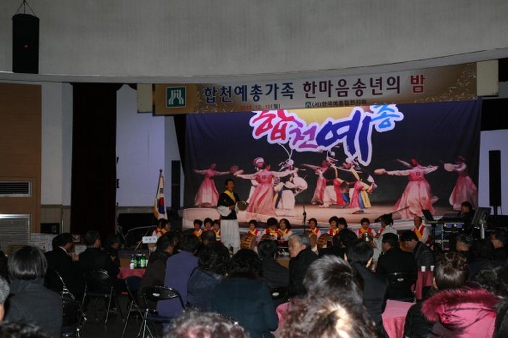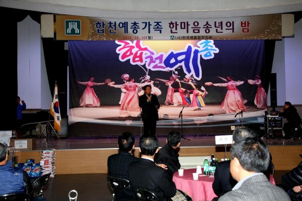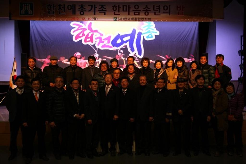 (사)한국예총합천지회(지회장 하상도)에서는 12월 10일 오후6시 합천군문화예술회관 대공연장에서 허홍구 군의회의장, 강경윤 합천교육지원청교육장, 허종홍 군의회부의장, 이용균·박우근·정재영 군의원, 강병문 산림조합장을 비롯한 내빈과 예총 가족 300여명이 참석한 가운데 합천예총가족 한마음 송년의 밤 행사를 개최하였다.