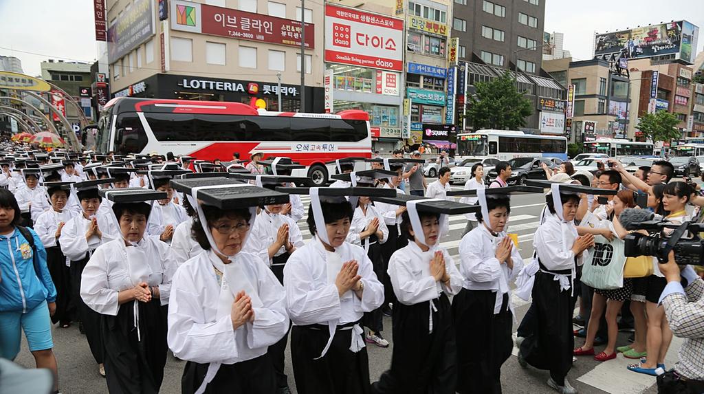 이 행사에는 합천군민,해인사 스님,합천 향우회 회원,부산시민 등 500여명이 참가해 취타대의 연주에 맞춰 대장경판을 머리에 이거나 지게, 등짐, 소달구지