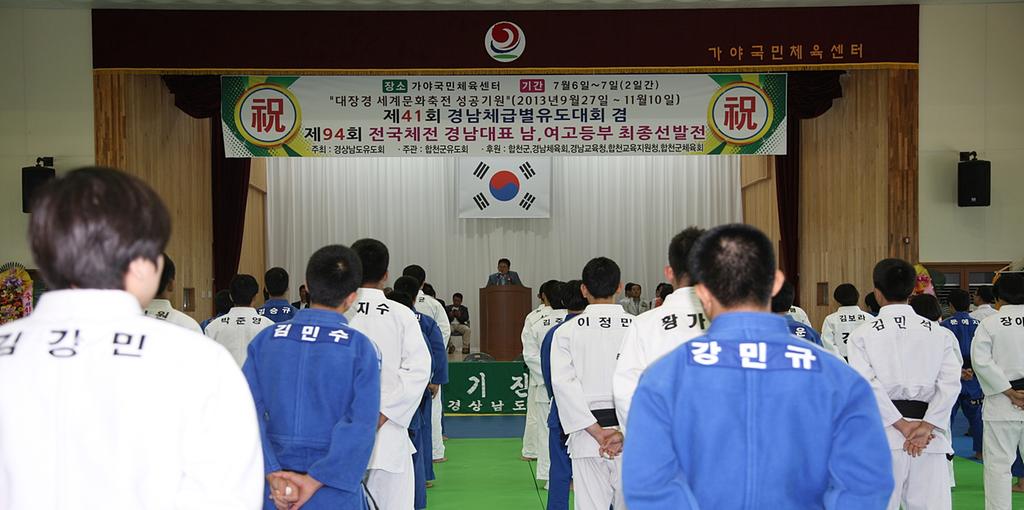 경남 유도의 최대 축제인 '제41회 경남체급별 유도대회 겸 제94회 전국체전 경남대표 남·여 고등부 최종선발전'이 하창환 합천군수, 강경윤 합천교육장, 문준희 도의원, 윤병석 경남유도회장을 비롯한 기관·사회단체장, 선수 및 학부모, 각 시·도 유도관계자 등 1,000여명이 참석한 가운데 5일부터 6일까지 합천군 가야국민체육센터에서 열렸다.