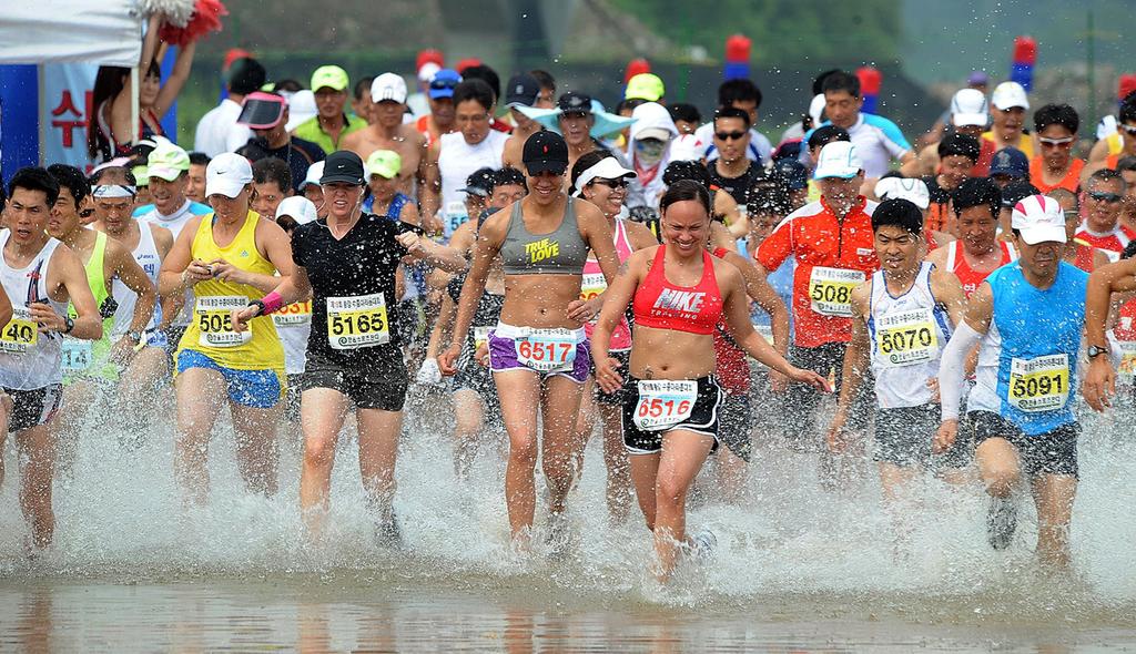 올해 18번째로 열리는 황강수중마라톤대회는 전국 각지의 마라톤동호인과 외국인