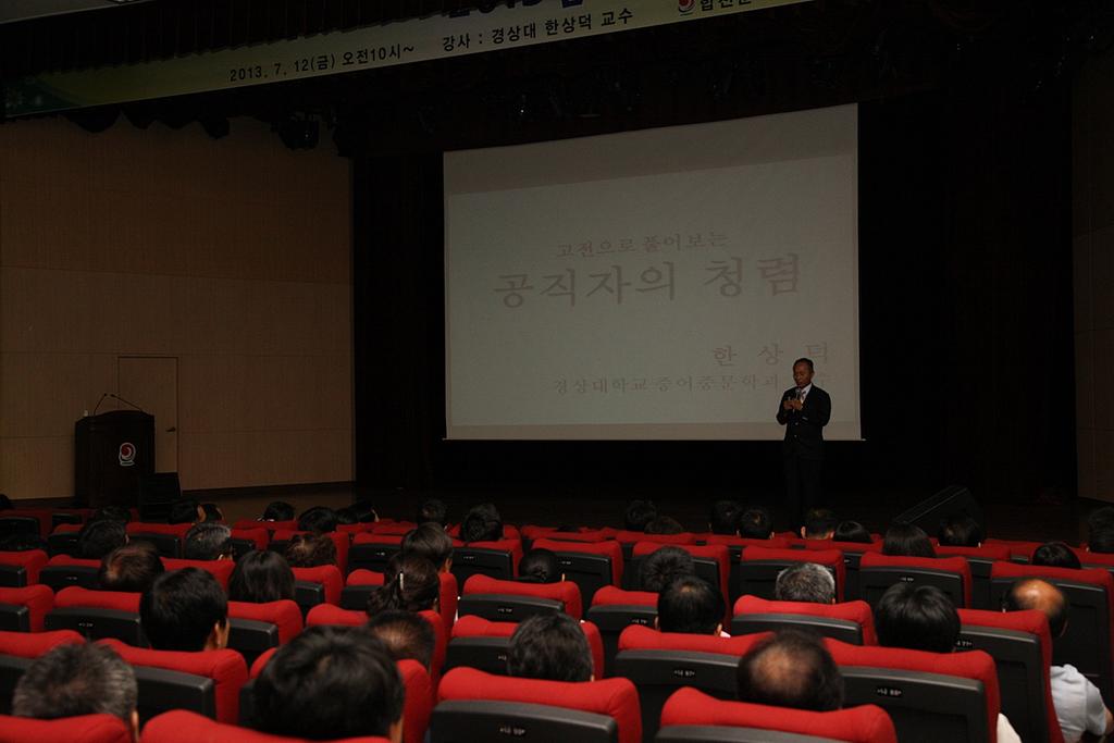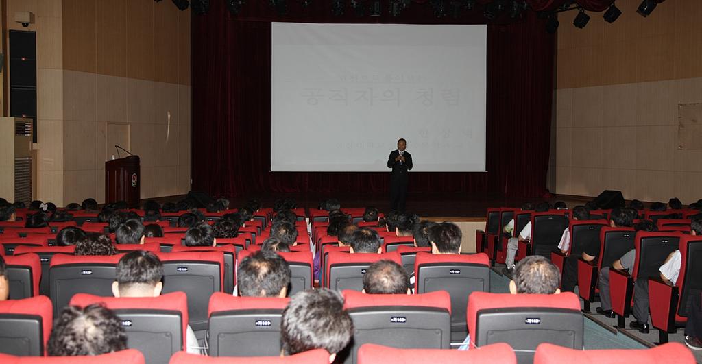 강사로 초빙된 한상덕 교수는 현재 경상대학교 중어중문학과 교수로 재직하고 있으며, 창원, 양산, 밀양, 창녕군청 등 많은 기관에서 청렴교육을 강의해 온 청렴강의의 달인으로 알려져 있다.