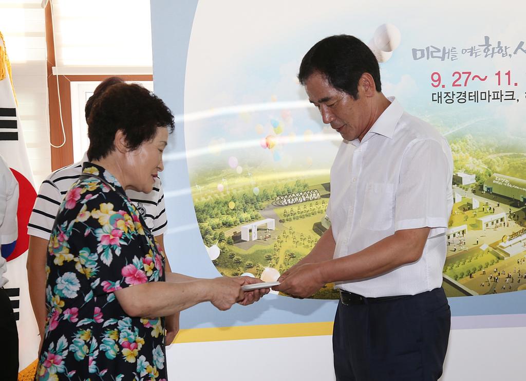 이날 성금은 회원들의 자발적 참여로 모금된 150만원과, 지난 7월 29일 합천예술제 행사 시 차 봉사를 겸한 이웃돕기 모금행사에서 모은 544,000원도 함께 기탁했다.