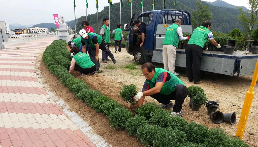 합천읍 남정교에서 군민체육관까지 약2Km 구간과 외래 관광객이 많이 찾는 합천댐 주변 대형 원형화분 100개와 간이 화단에 가을 국화 5,000여본을 식재하였다.