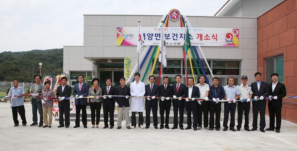 합천군은 24일 하창환 군수, 허종홍 부의장 및 군의원, 문준희 도의원, 지역기관 사회단체장 등 120여명이 참석한 가운데 대양면 보건지소 개소식을 가졌다.