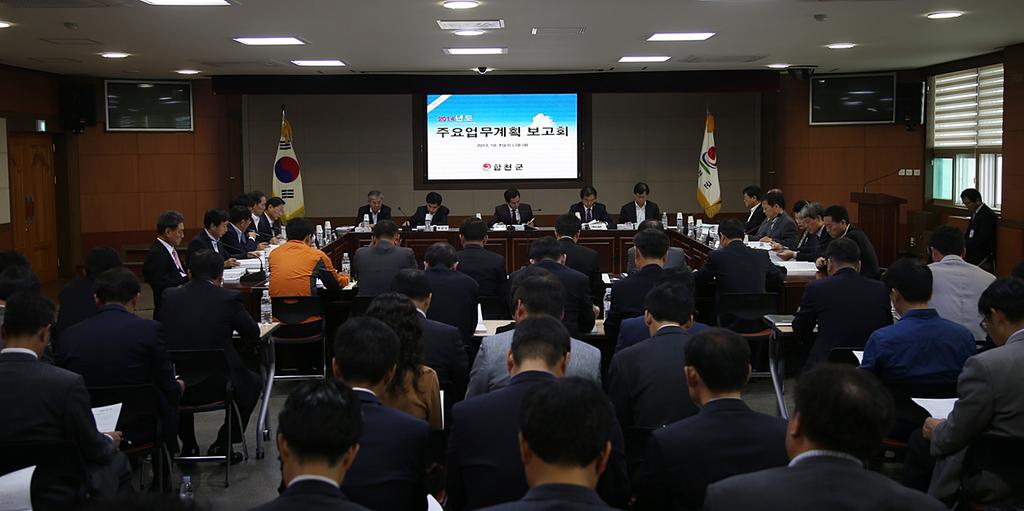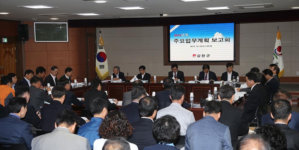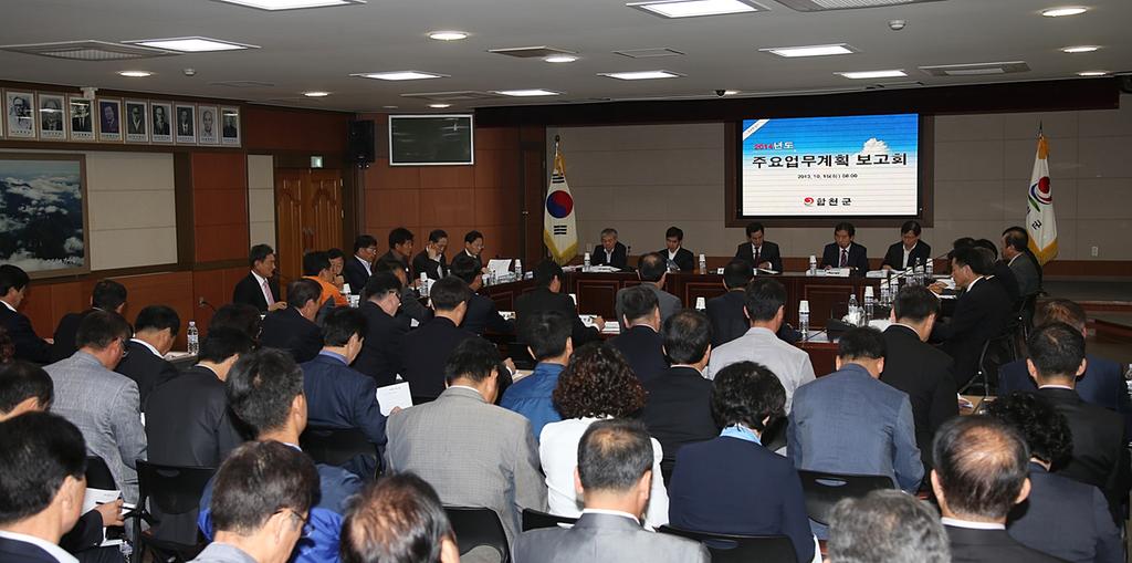 합천군은 15일 군청 3층 대회의실에서 하창환 군수, 김해용 부군수를 비롯한 실과단사업소장 및 부서별 담당 등 120여명이 참석한 가운데 2014년도 군정주요업무 보고회를 가졌다.